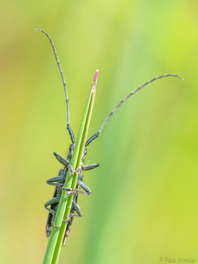 Käfer Beetles (Coleoptera) Agapanthia intermedia (Langhaariger Scheckhornbock)