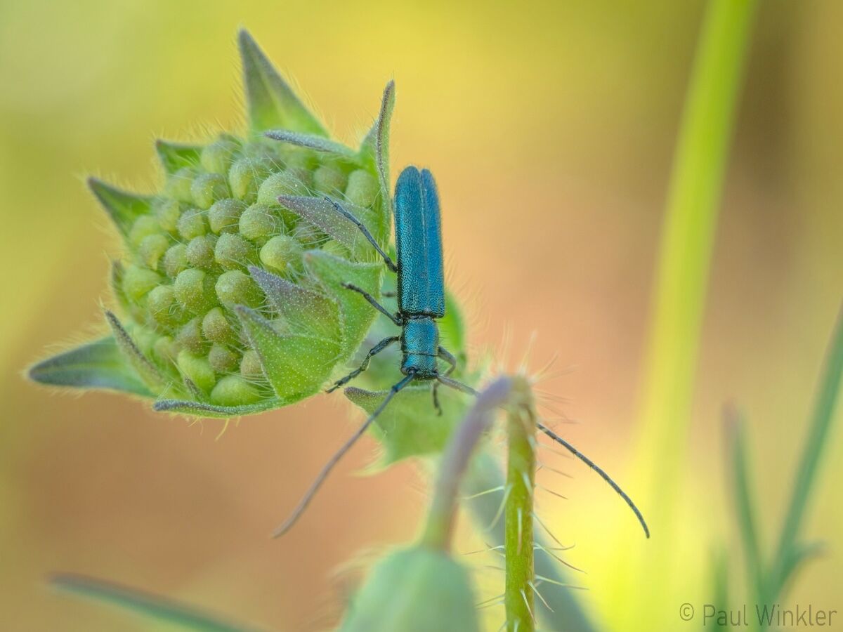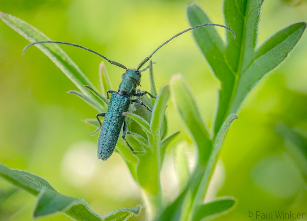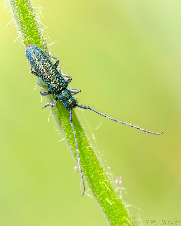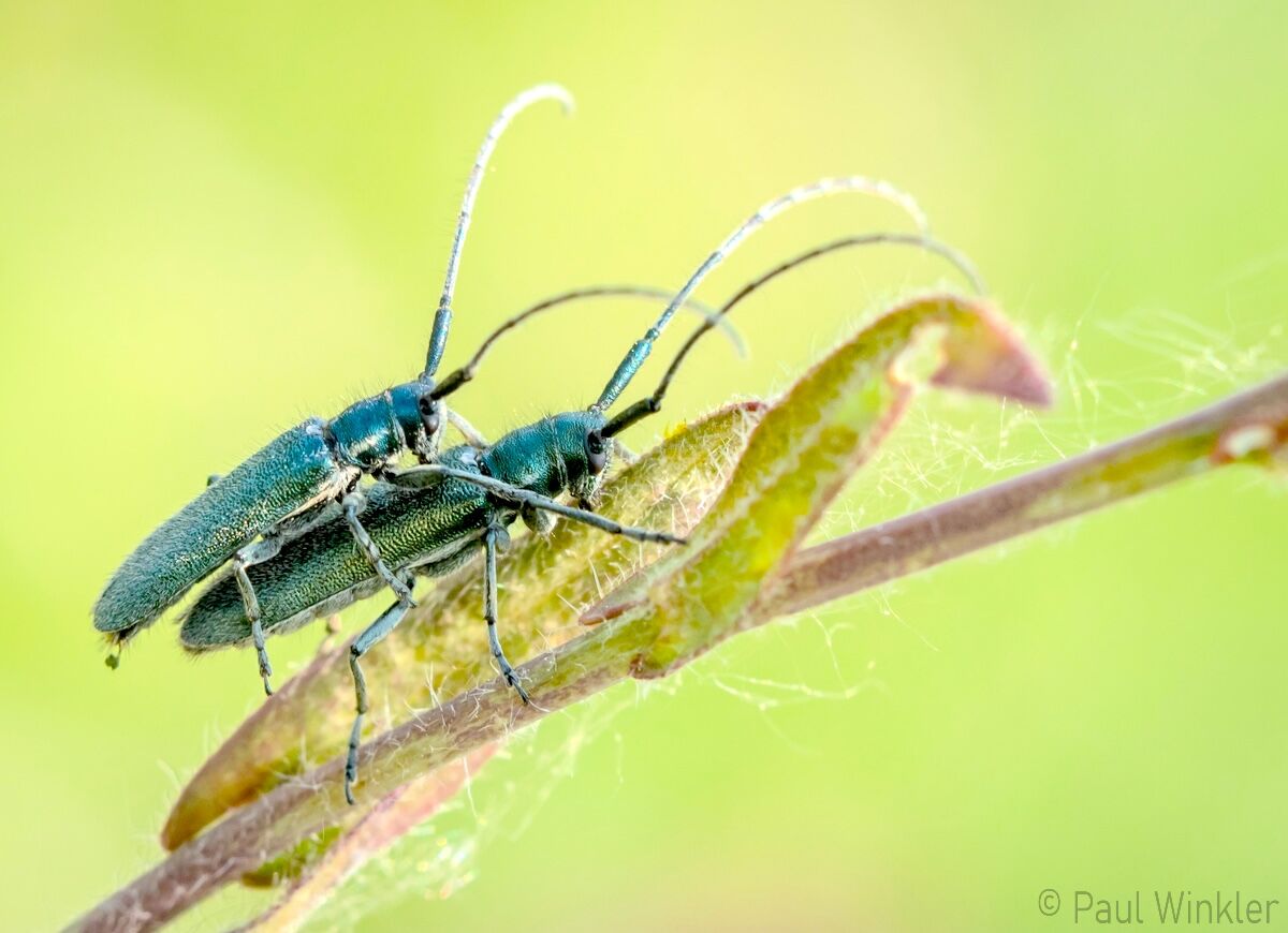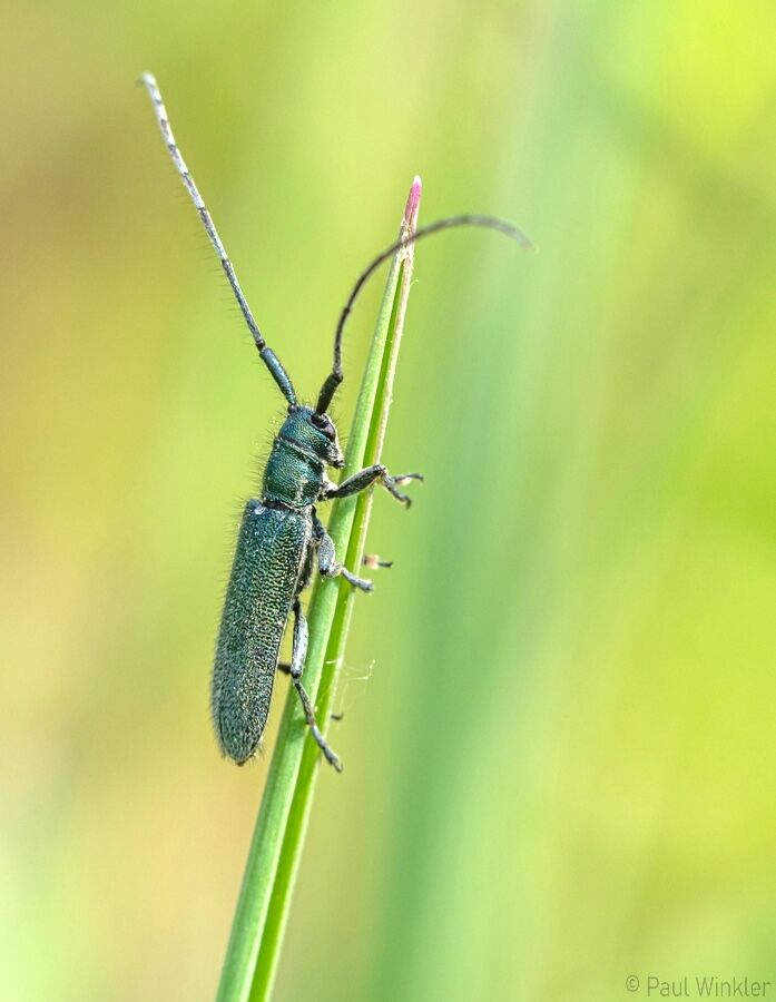 Agapanthia cardui (pannonica) (Weissstreifiger Distelbock)Agapanthia villosoviridescens (Distelbock)