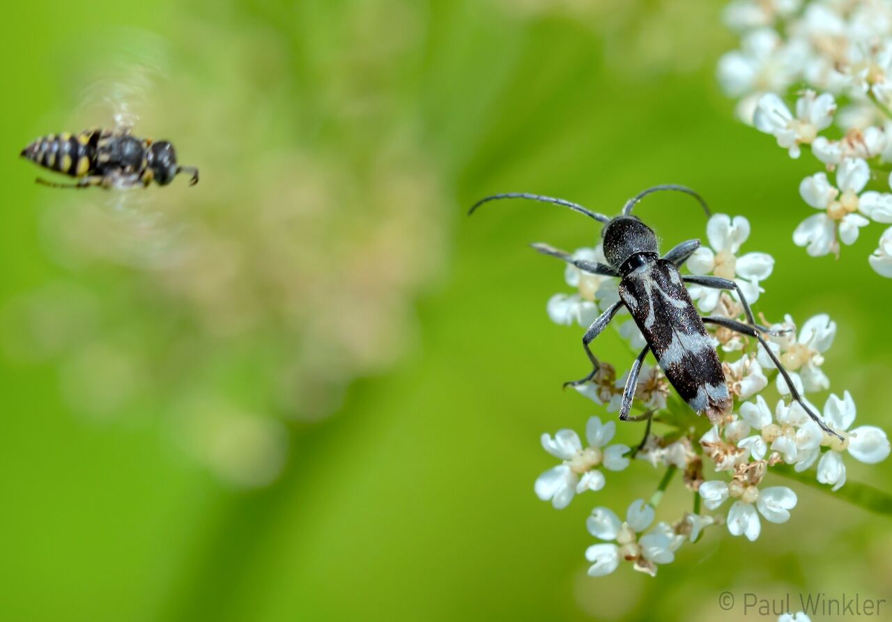 Cerambyx scopolii (Kleiner Eichenbock)Chlorophorus herbstii (Grüngelblicher Wollkraut-Widderbock)