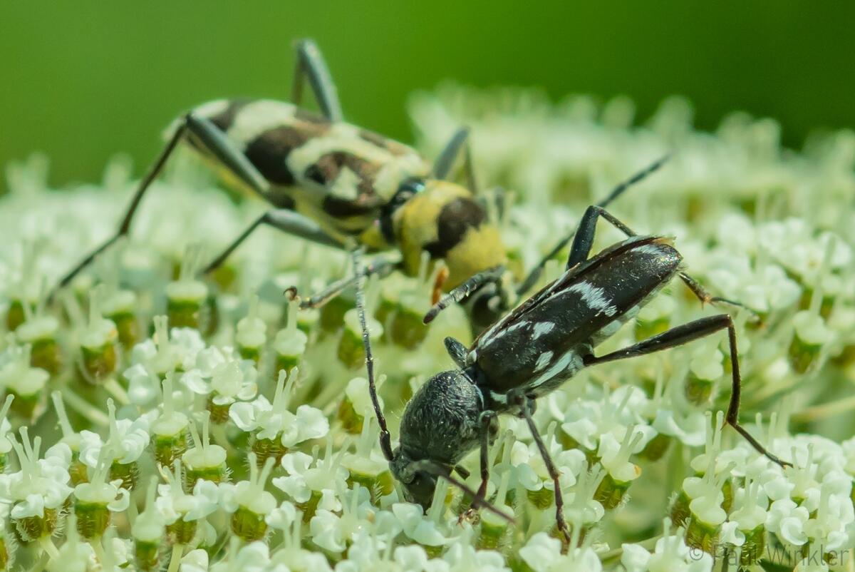 Chlorophorus herbstii (Grüngelblicher Wollkraut-Widderbock)Chlorophorus varius (Variabler Widderbock)