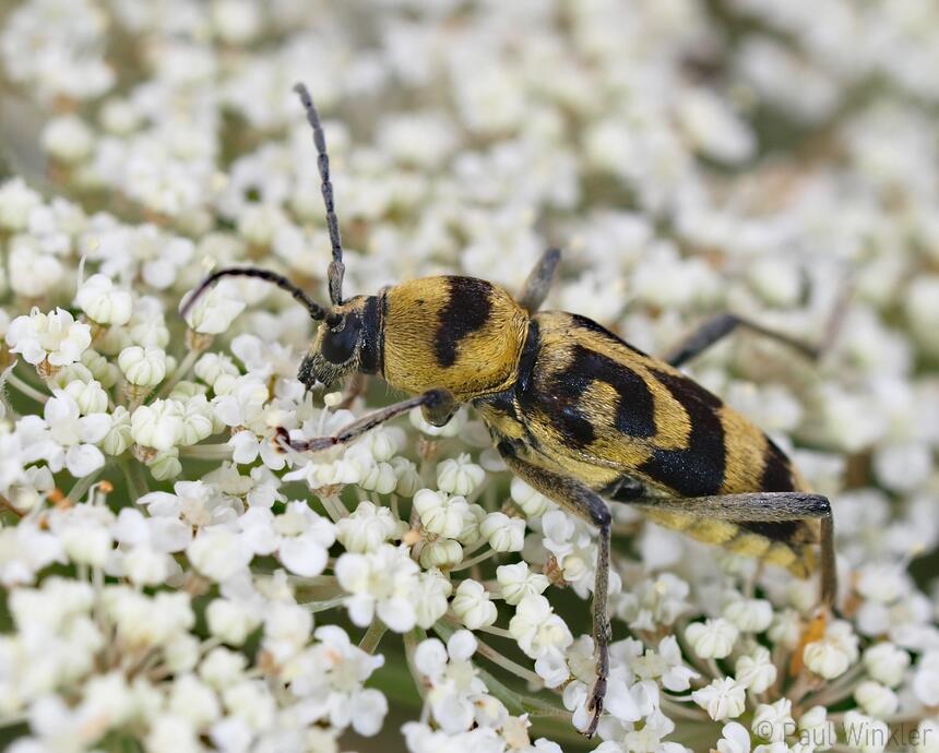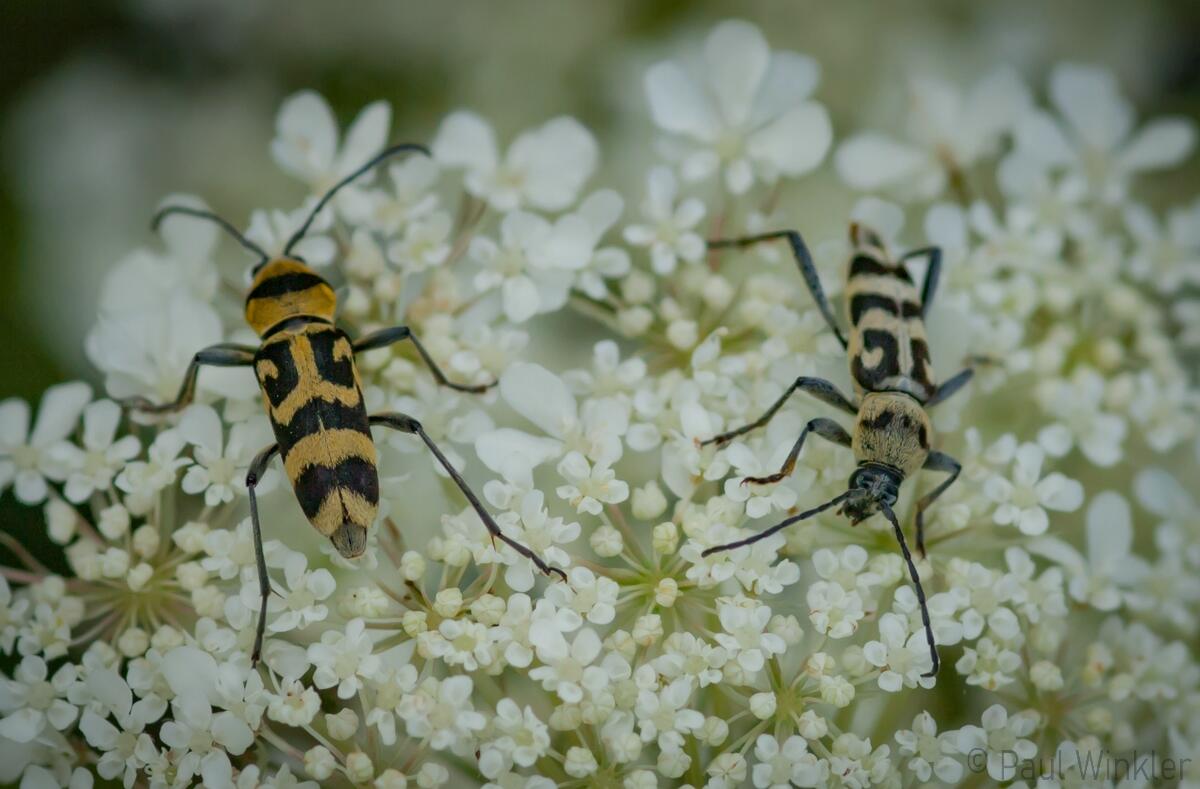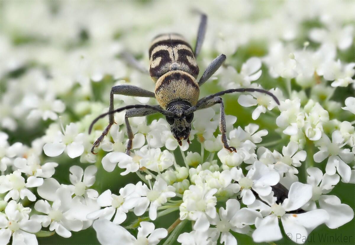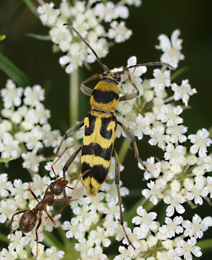 Chlorophorus sartor (Weissbindiger Widderbock)Clytus arietis (Echter Widderbock)