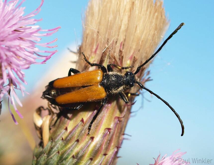 Käfer Beetles (Coleoptera) Stictoleptura fulva (Schwarzspitziger Halsbock)