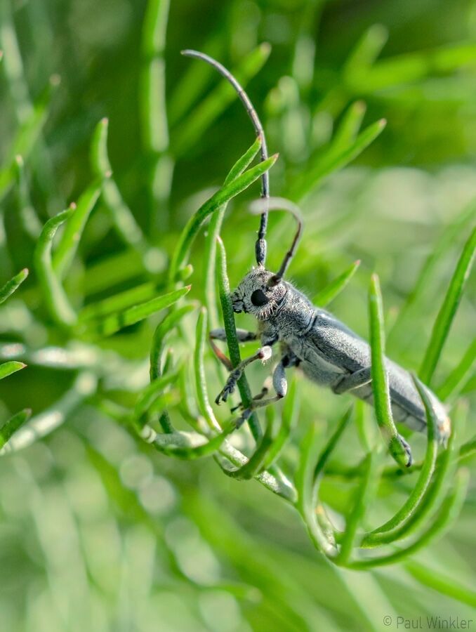 Agapanthia intermedia (Langhaariger Scheckhornbock)
