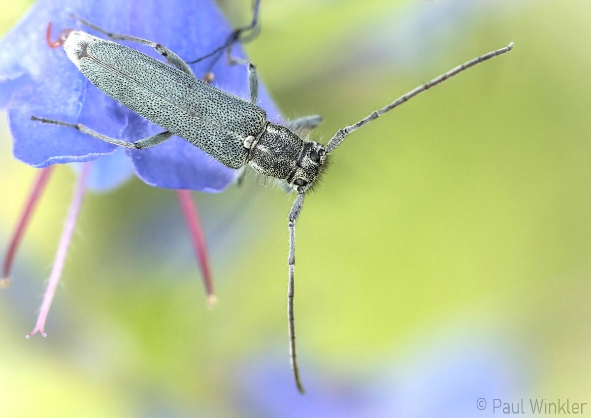 Agapanthia intermedia (Langhaariger Scheckhornbock)