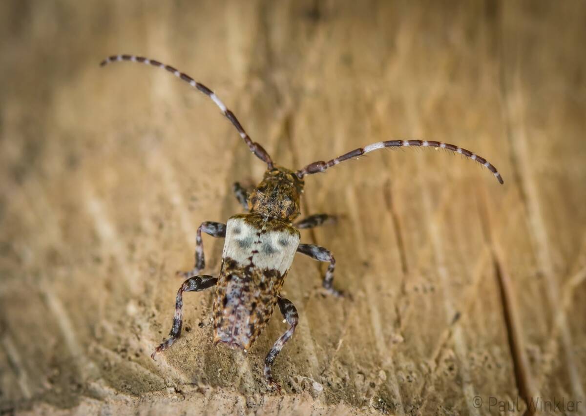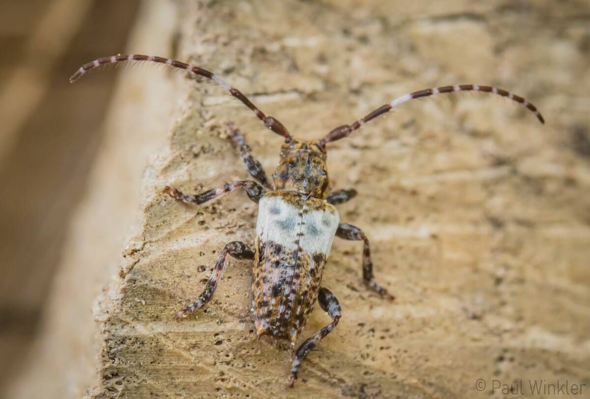 Plagionotus detritus (Bunter Eichen-Widderbock)Pogonocherus hispidus (Dorniger Wimperbock)
