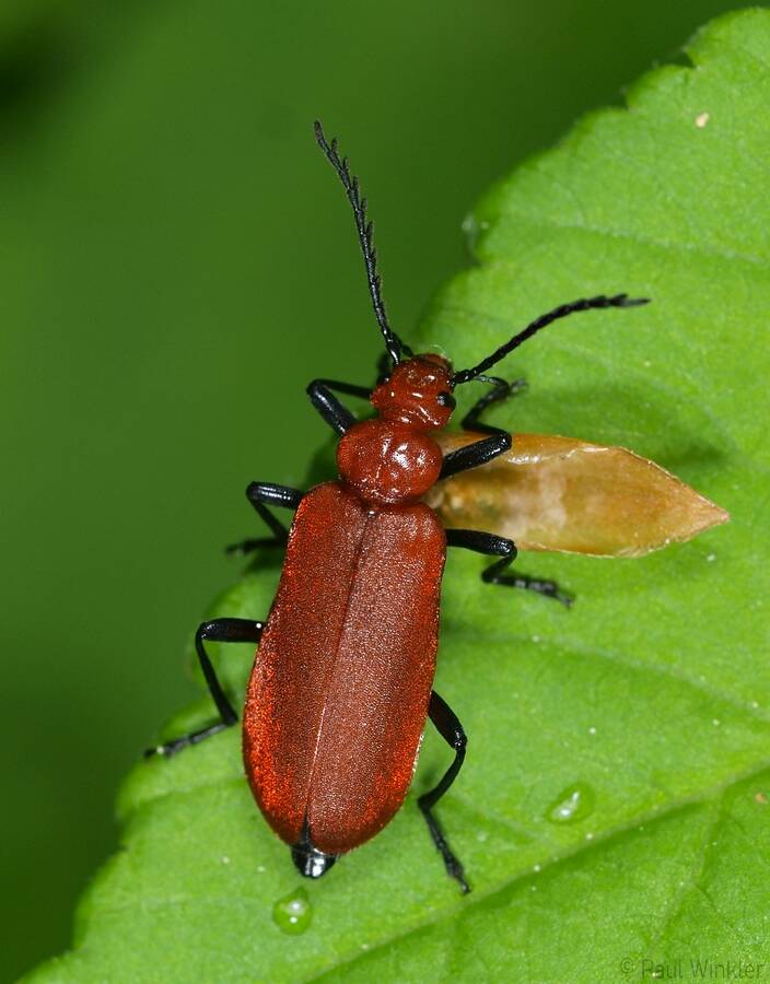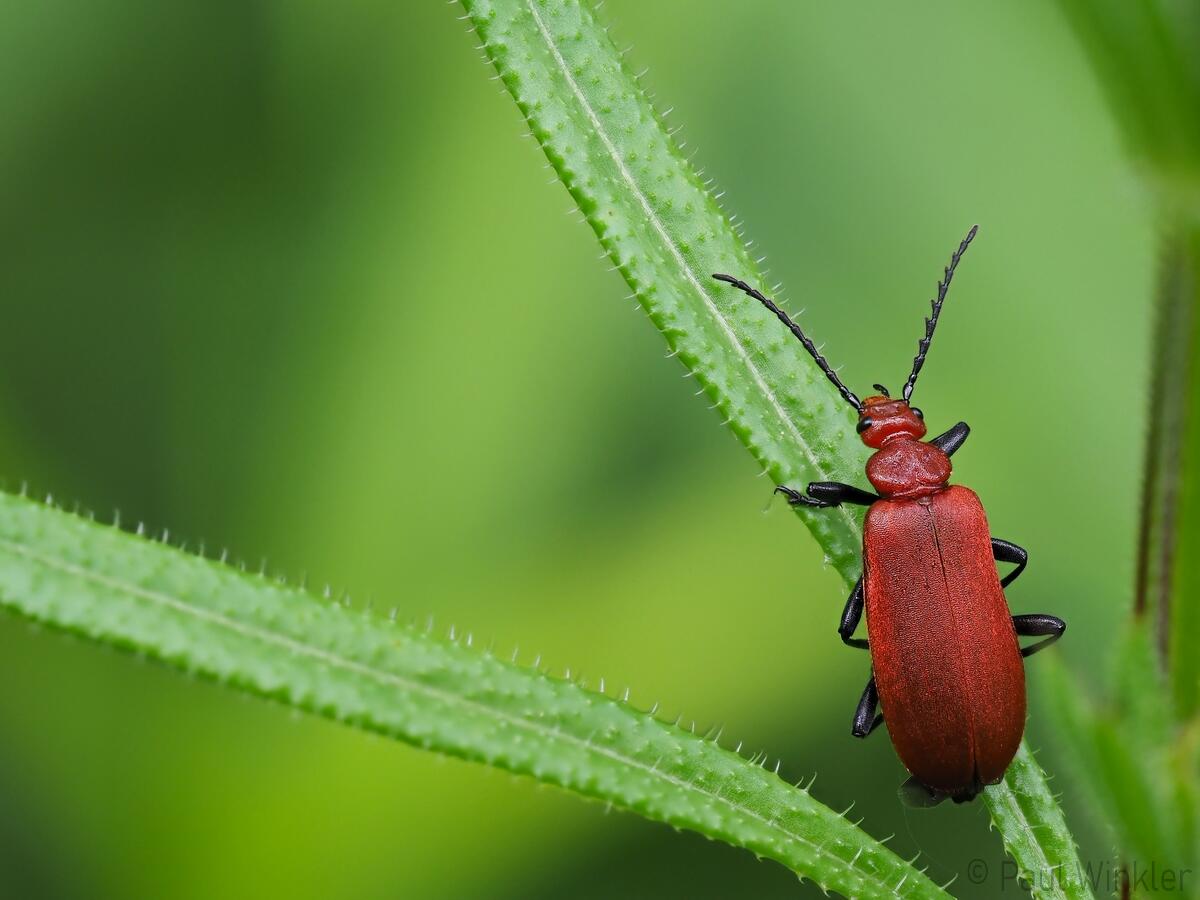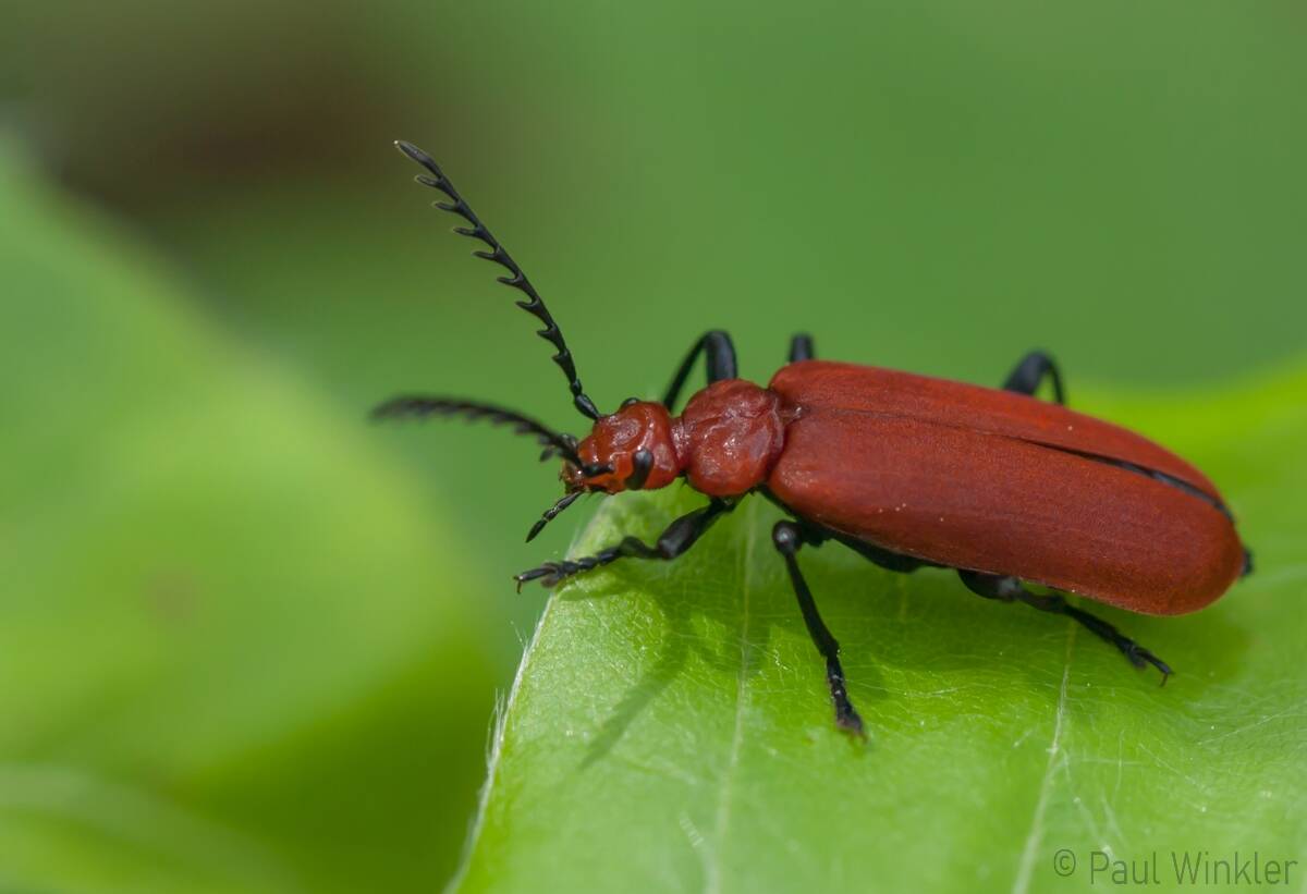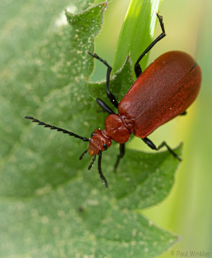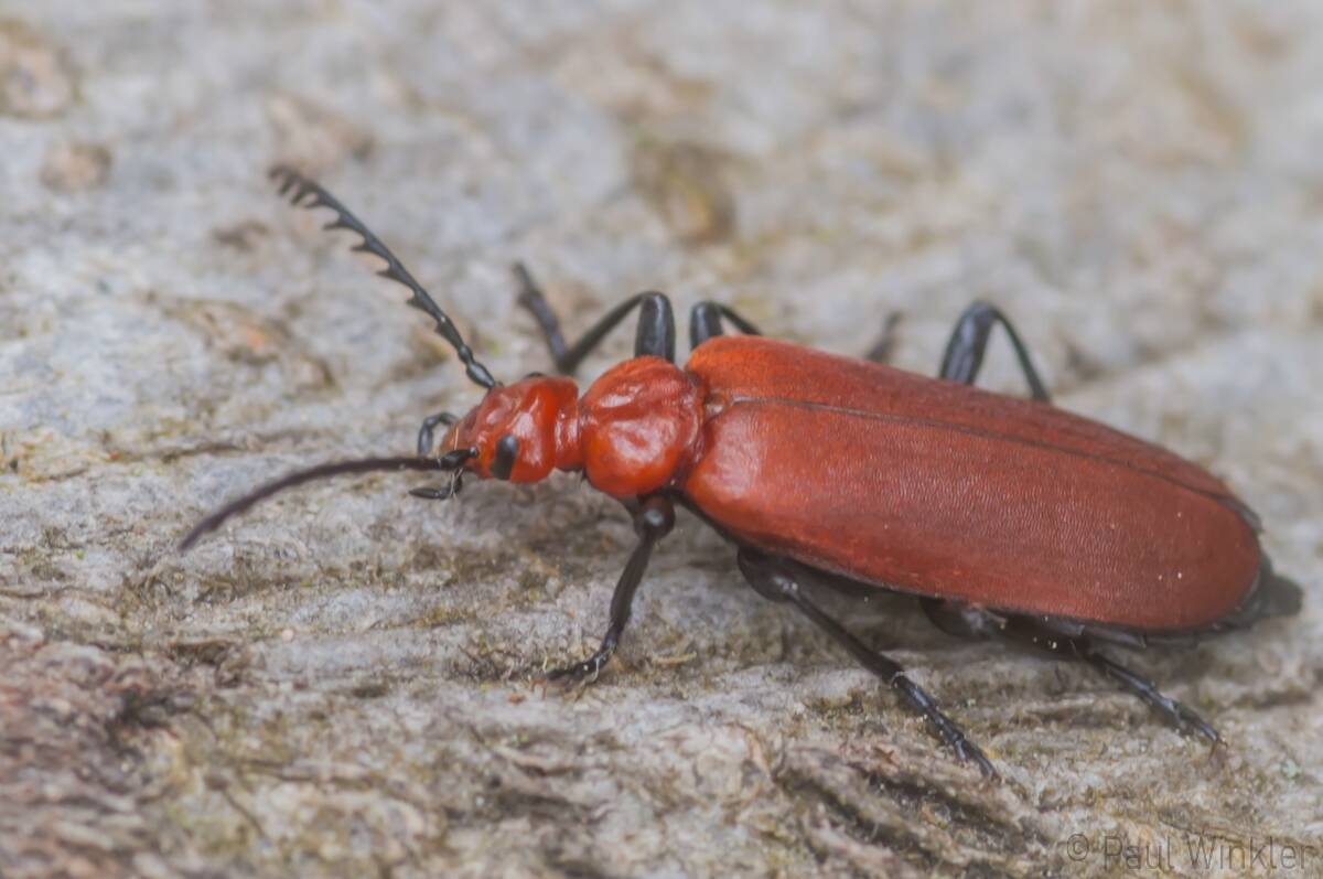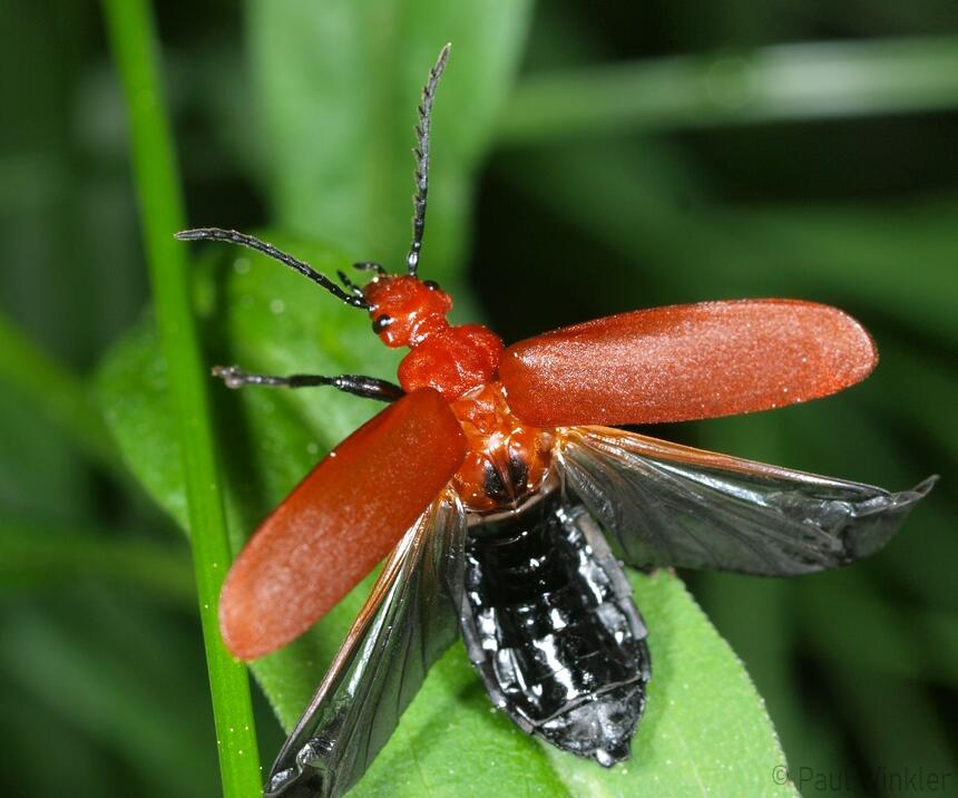 Pyrochroa coccinea (Scharlachroter Feuerkäfer)Schizotus pectinicornis (Orangefarbener Feuerkäfer)