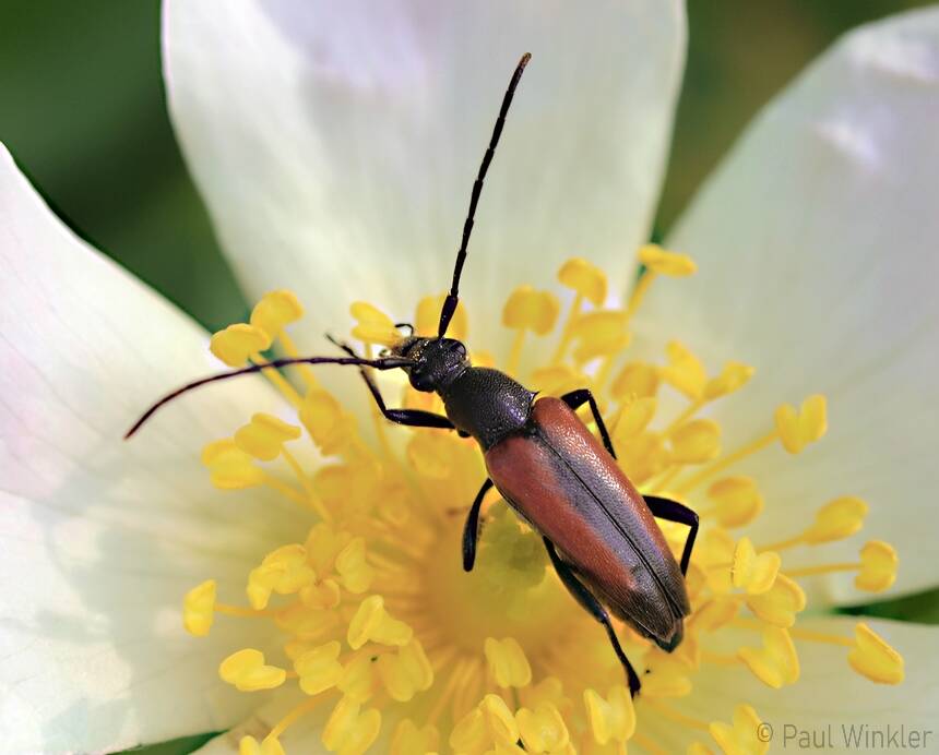 Stenurella bifasciata (Zweibindiger Schmalbock)Rutpela nigra (Schwarzer Schmalbock)